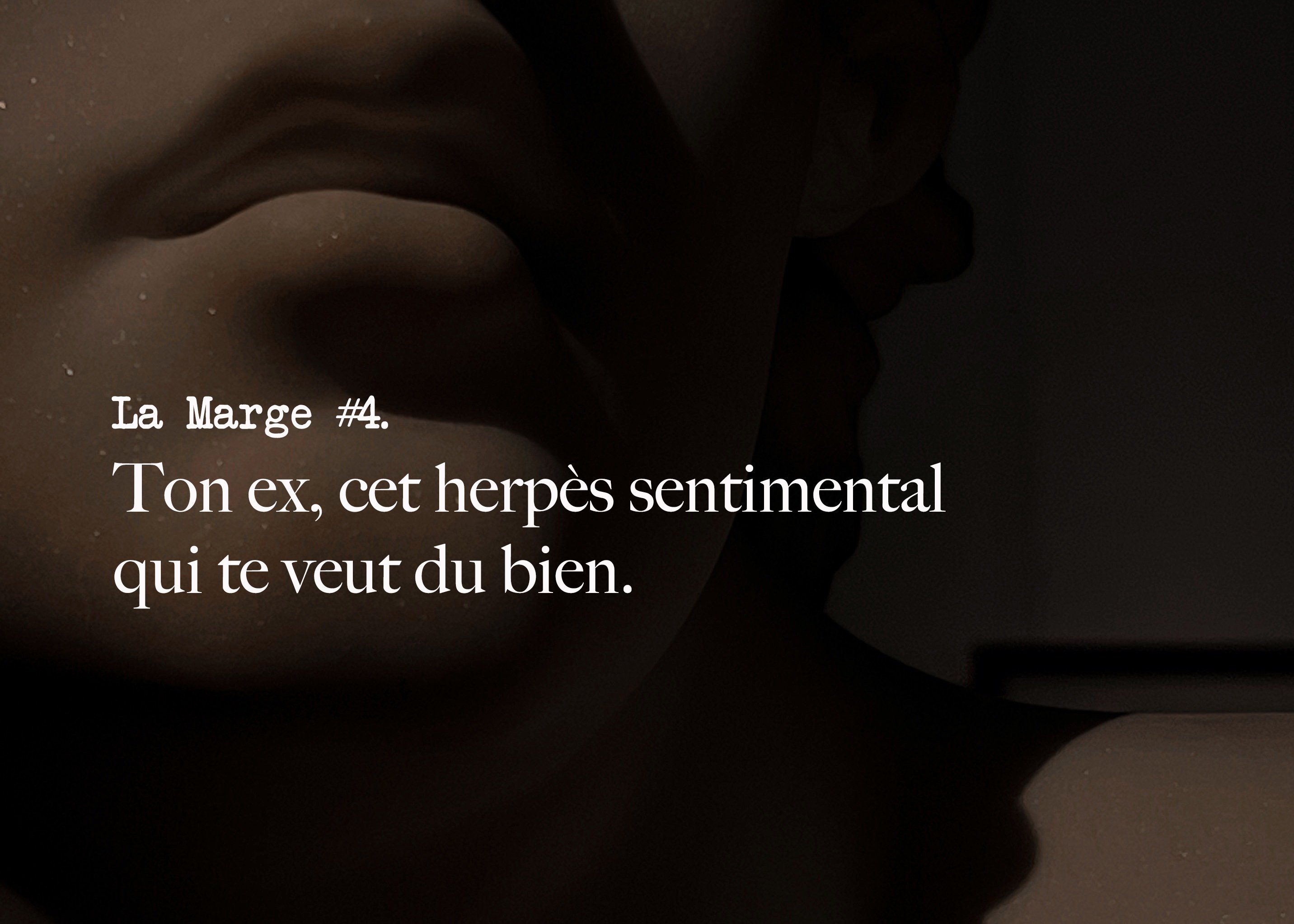 Je crois que chacun d’entre nous possède son propre ‘ex majuscule’. Tu sais, cette personne qui n’est ni ton premier amour, ni ton dernier mais qui a compté pour toute une vie tant son passage a marqué la personne que tu es. Le mien, c’est A. De 2011 à 2020, il a contribué à la pire télé novela de ma vie sentimentale, le cliché absolu de la relation toxique telle qu’on pouvait les aimer dans notre vingtaine, un genre de Chuck et Blair de Wish, luttant à qui fera le plus de mal à l’autre. À l’époque, j’avais l’habitude de dire que « l’alchimie ne se permet aucune concurrence ». Inutile de te préciser que j’étais très fière de ma citation de poétesse torturée alors que tout ce dont j’avais besoin de façon évidente, c’était d’une thérapie. C’est à ses côtés que j’ai aimé le plus fort, et surtout, le plus mal.